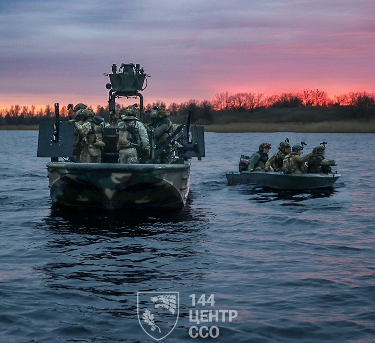 На оприлюднених світлинах — робота екіпажів під час сутінок: камуфляж, прилади нічного бачення, зброя на стабілізованих установках та щільна взаємодія групи на воді.