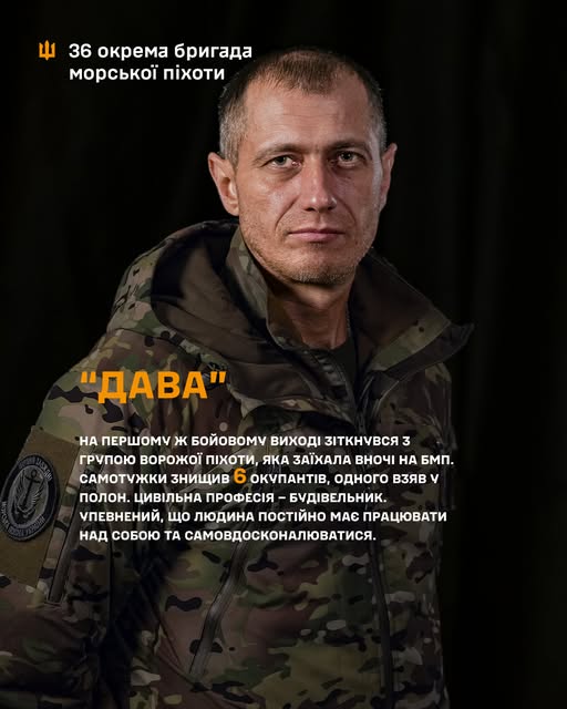 До війська «Дава» приєднався у лютому 2025 року, у цивільному житті працював будівельником. Свідомо обрав морську піхоту.