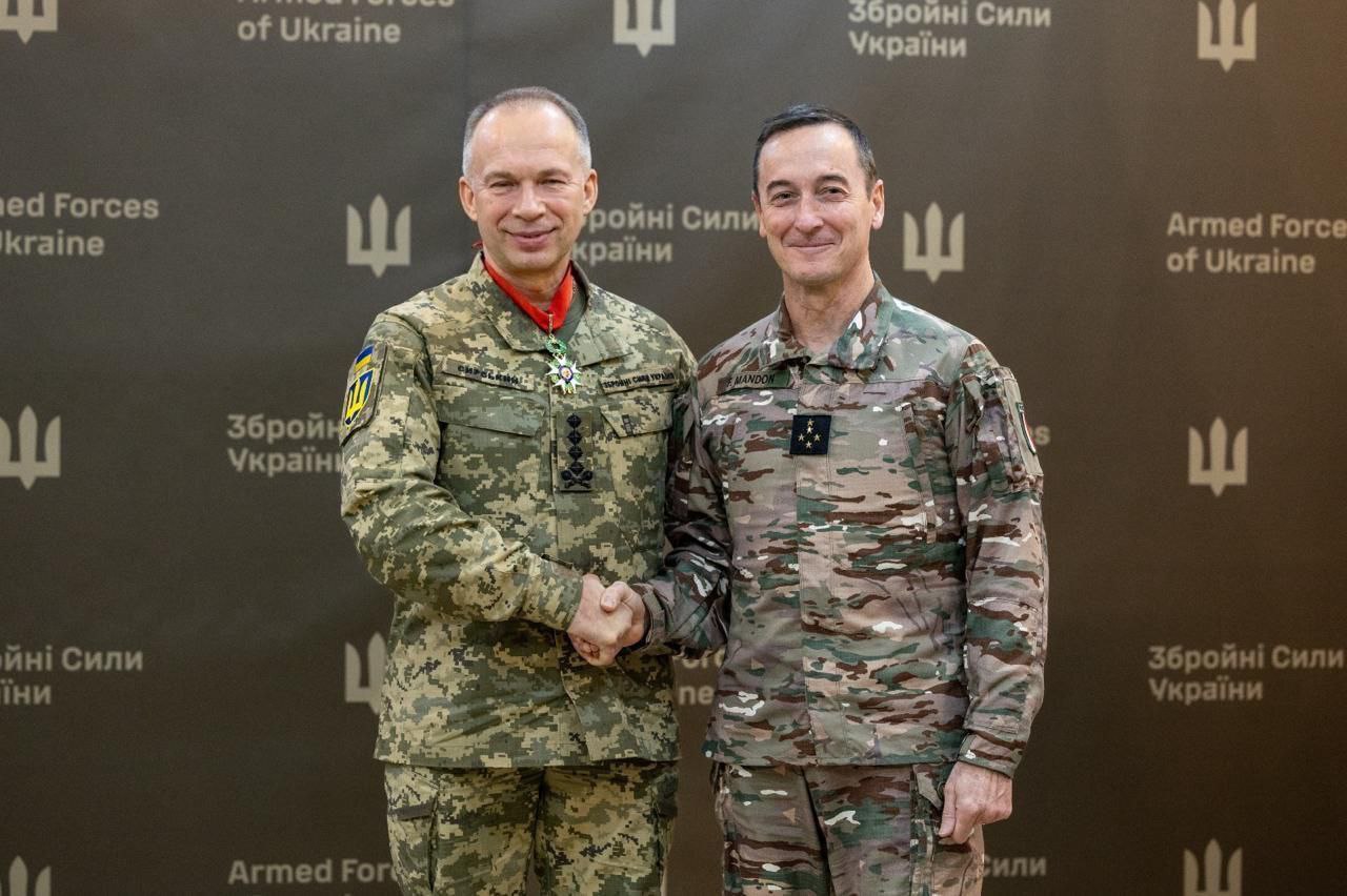 Нагорода була вручена генералу Олександру Сирському під час зустрічі із французькою військовою делегацією на чолі з Головнокомандувачем Збройних Сил Франції генералом Фаб’єном Мандоном.