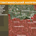 На Костянтинівському напрямку ворог здійснив 20 атак у районах населених пунктів Клебан-Бик, Олександро-Шультине, Яблунівка, Русин Яр та у бік Плещіївки, Новопавлівки, Іванопілля, Софіївки.