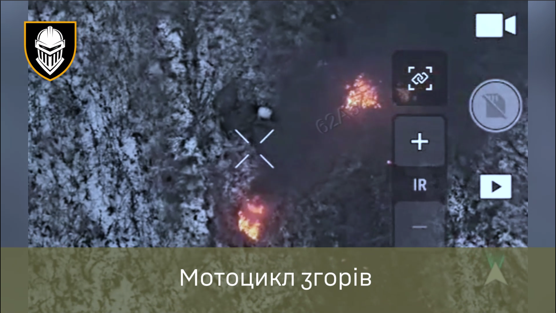 Зранку спробували прорватися двоє окупантів на одному мотоциклі. Але влучний удар FPV та скид з бомбера «затрьохсотив» обох та спалив техніку. Відзначилися екіпажі прикордонників.