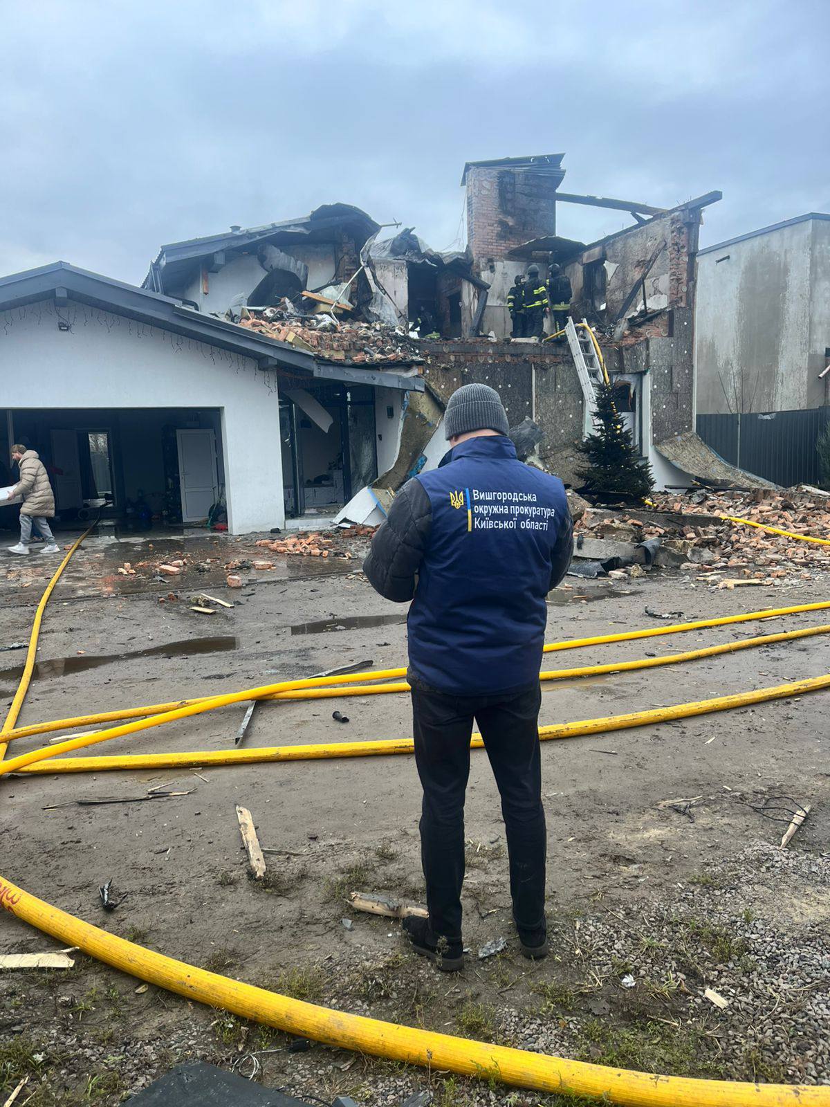 У Вишгородському районі внаслідок атаки виникла пожежа приватного житлового будинку. Загинула жінка. Троє людей зазнали осколкових поранень, серед них — неповнолітня.