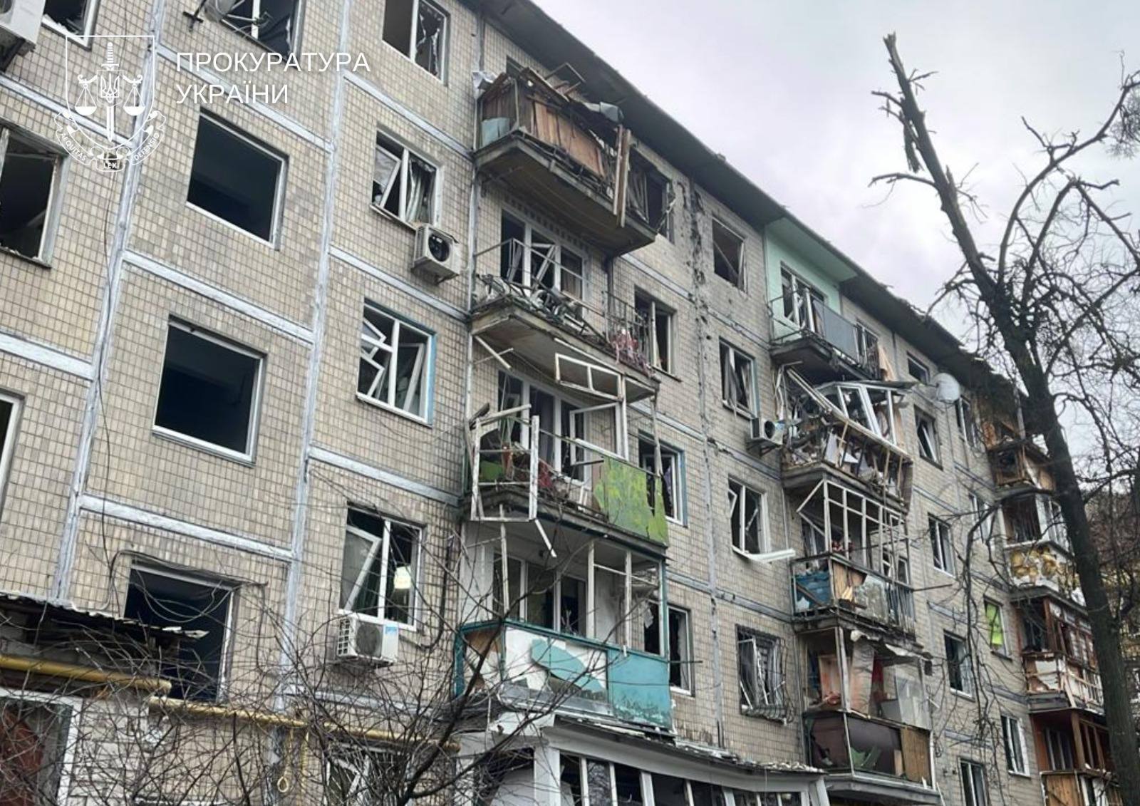Внаслідок атаки безпілотниках летальних апаратів на Київ пошкоджено 5-поверховий житловий будинок у Святошинському районі столиці.