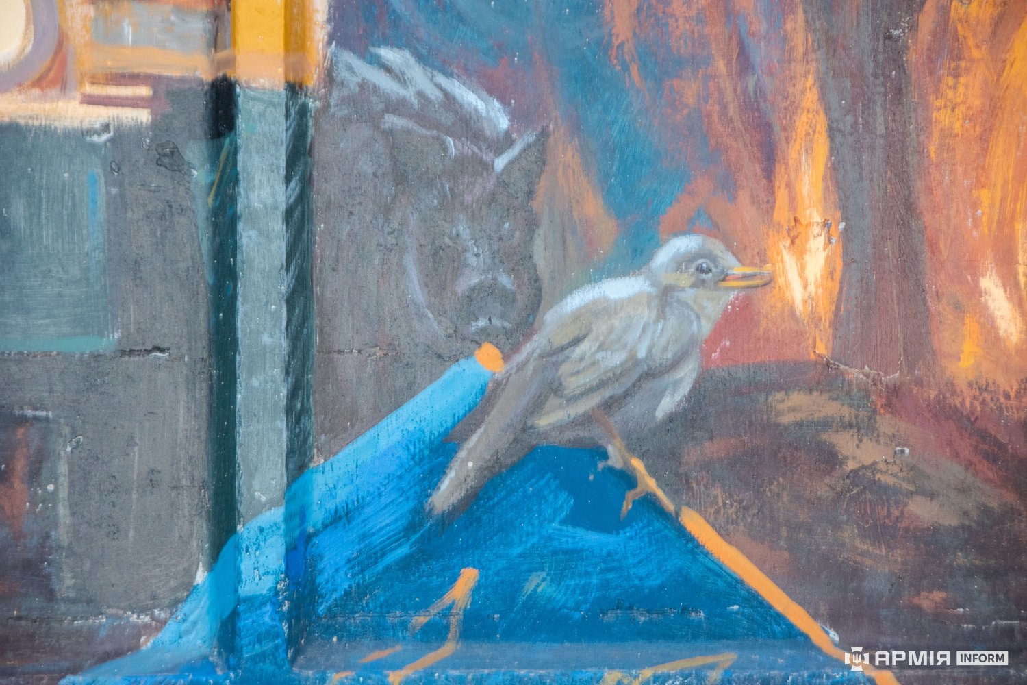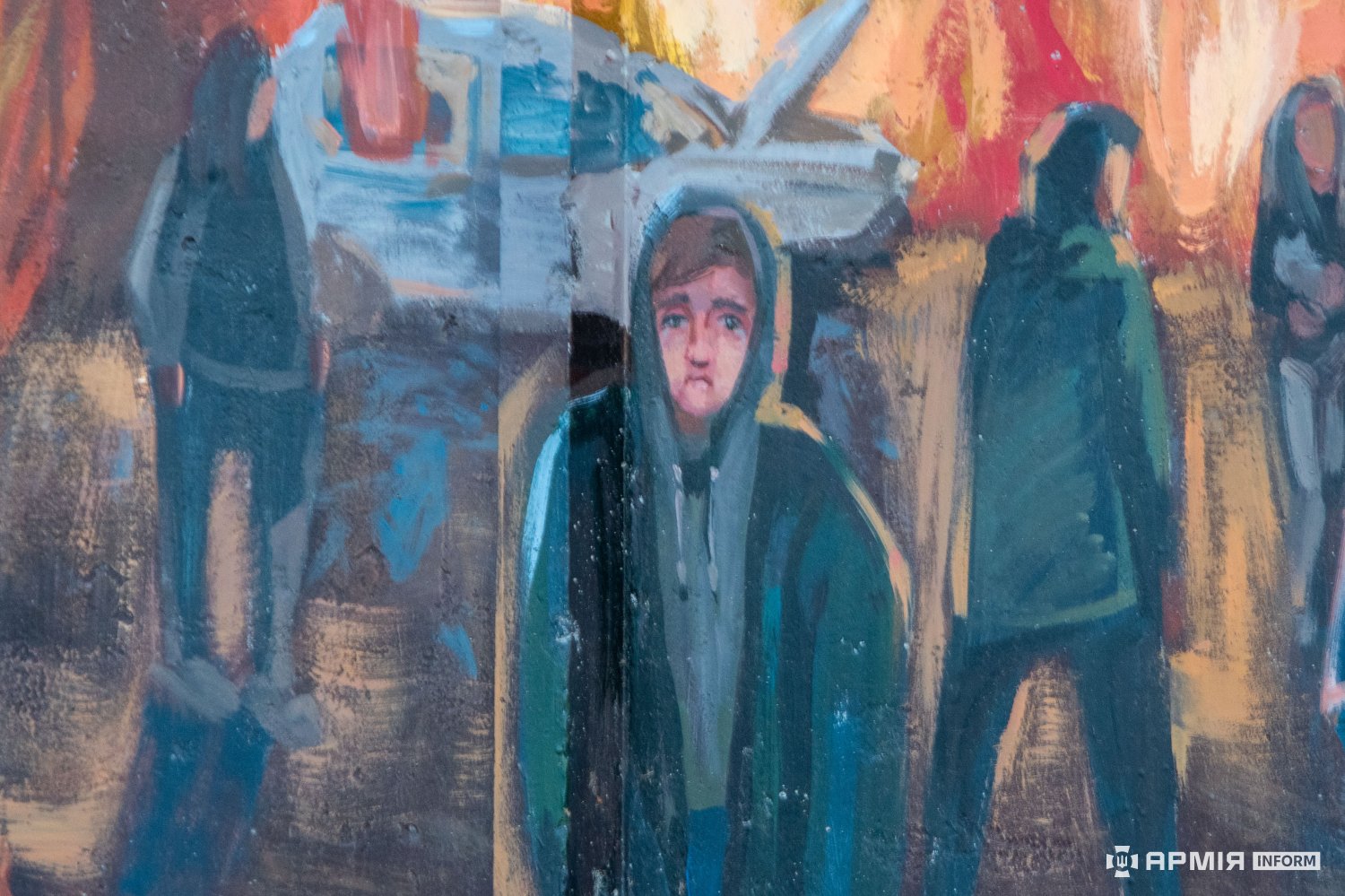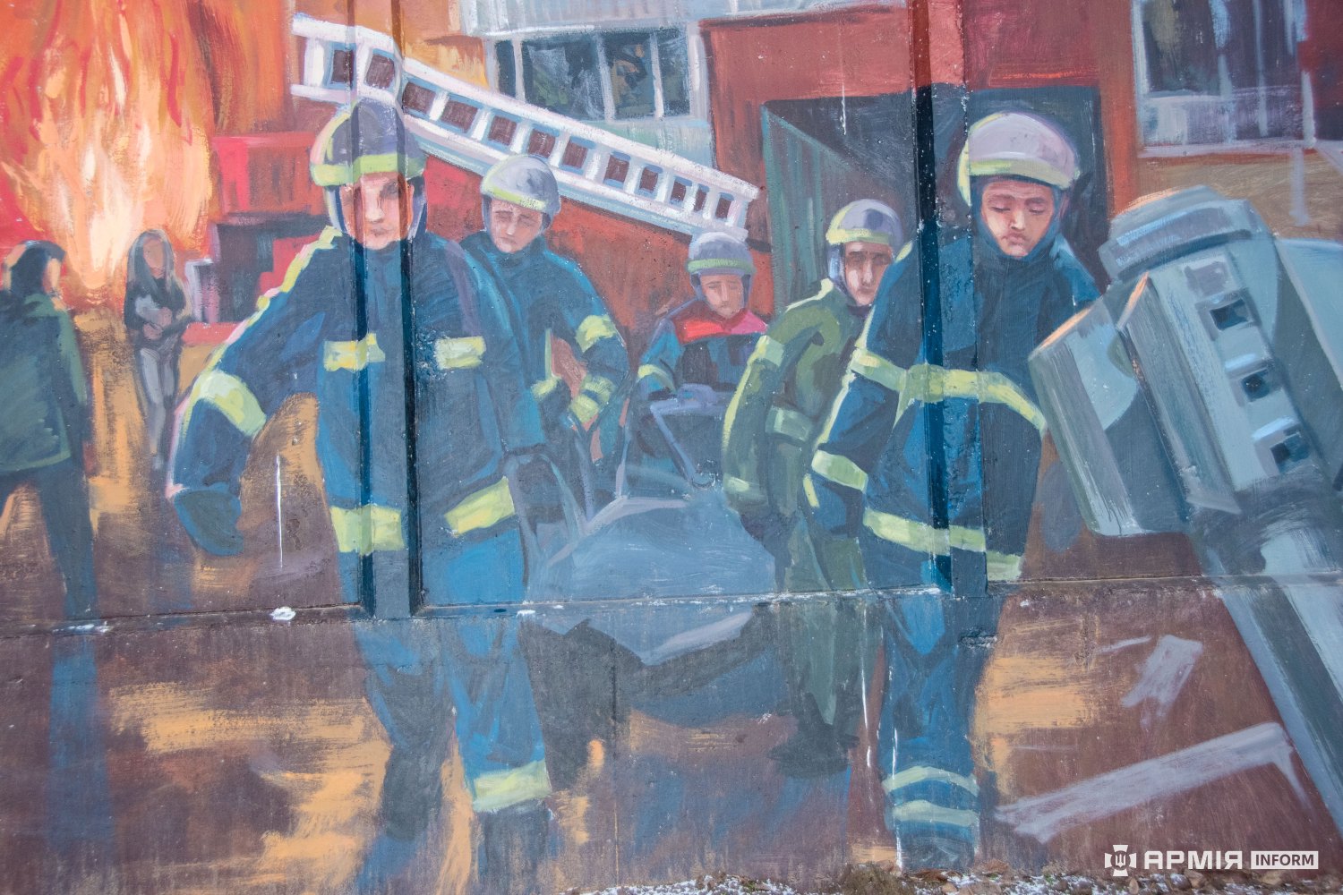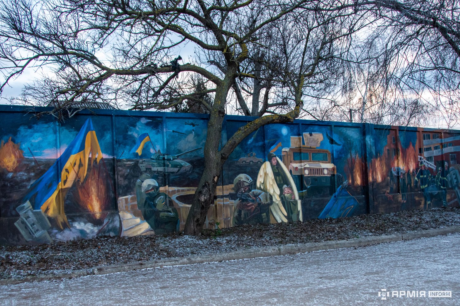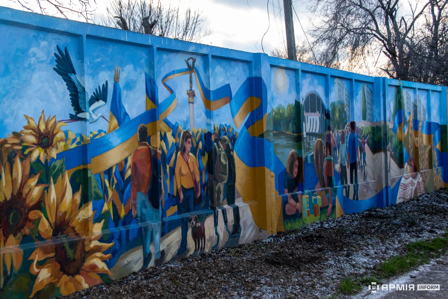 Народний мурал поруч Алеї Героїв — це масштабний триптих, в якому образи звитяги оборонців Збройних Сил України переплітаються з мотивами мирного буття — дитинством, хлібом і рідним містом, що потребує оборони.
