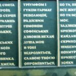 Центральним елементом композиції стала молитва українського націоналіста: «Україно свята, мати героїв, зійди до серця мого». Обабіч неї — сцени з мирного життя та фронтових буднів українських Воїнів.