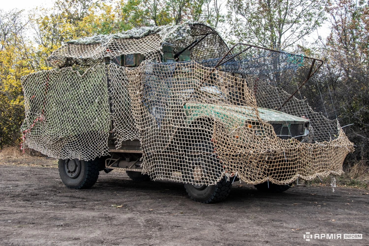 Від ураження ворожими боєприпасами екіпаж і десант «Ошкоша» надійно захищені не лише американською композитною бронею із рівнем захисту MRAP, але й місцевим українськими вдосконаленням — грубою рибальською сіттю, натягнутою на встановлений на кузов ББМ каркас.