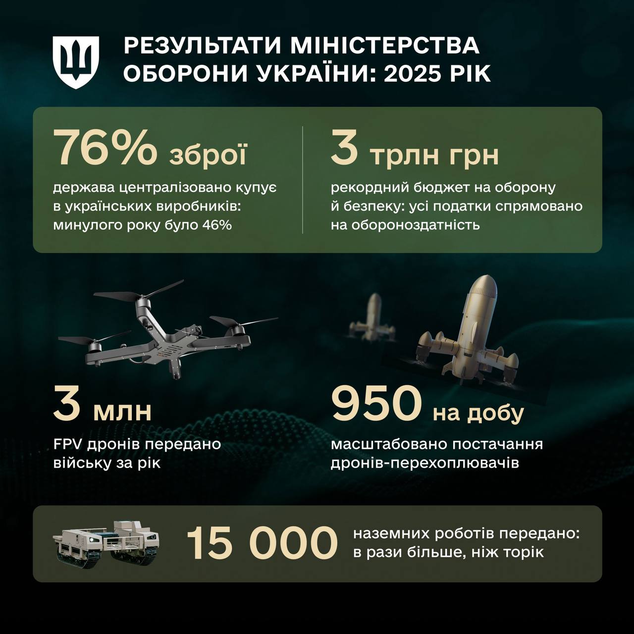 У 2025 поставили у військо рекордну кількість FPV дронів і почали масові поставки наземних роботів та дронів-перехоплювачів.