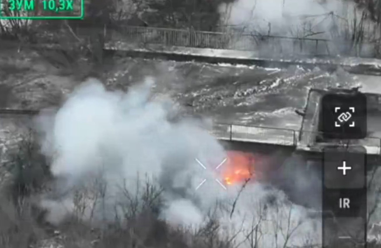 У ролику видно, як російські загарбники ховались під мостом. Але українські дрони обережно облетіли всі перешкоди й уразили їх.