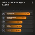 Дивіться, чому навчалися 100 тисяч військових, які обрали один з 19 навчальних курсів у застосунку Армія+», — запропонувало Міністерство оборони України.