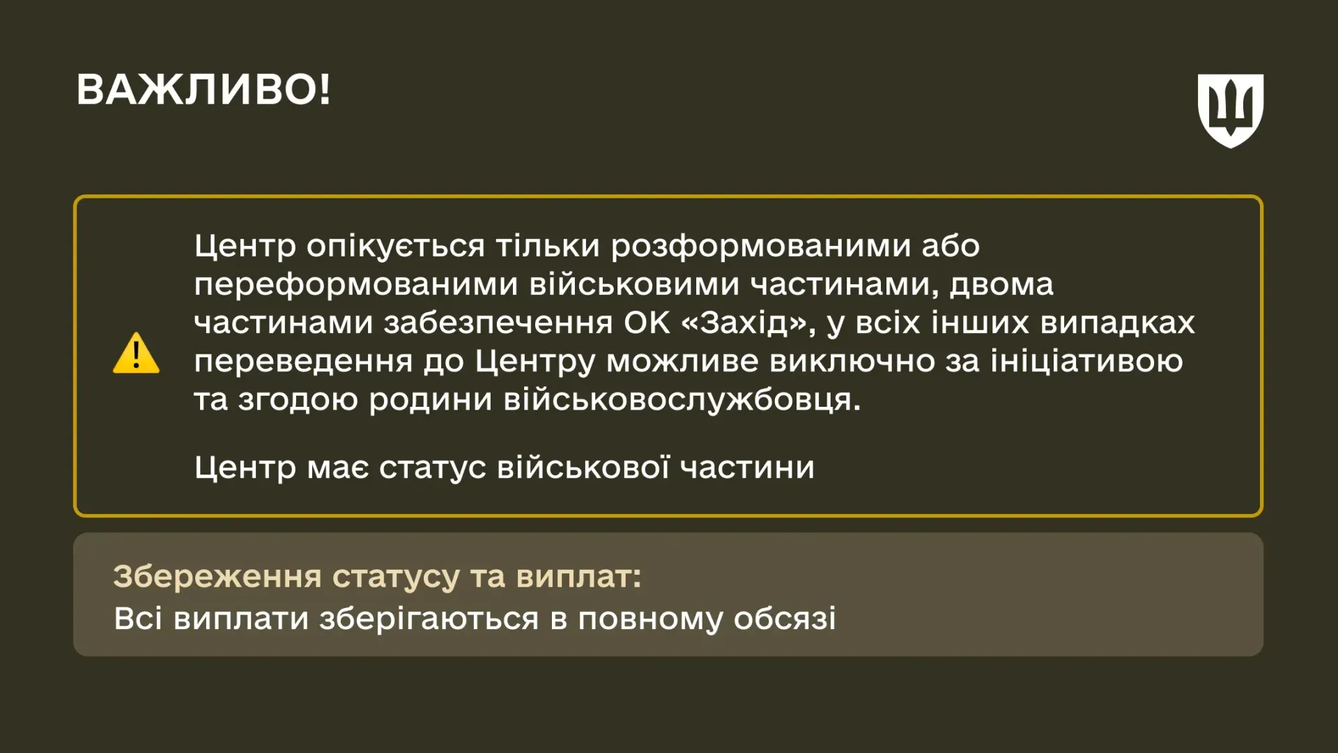 Він матиме статус військової частини та підпорядковуватиметься оперативному командуванню «Захід» Командування Сухопутних військ Збройних Сил України.
