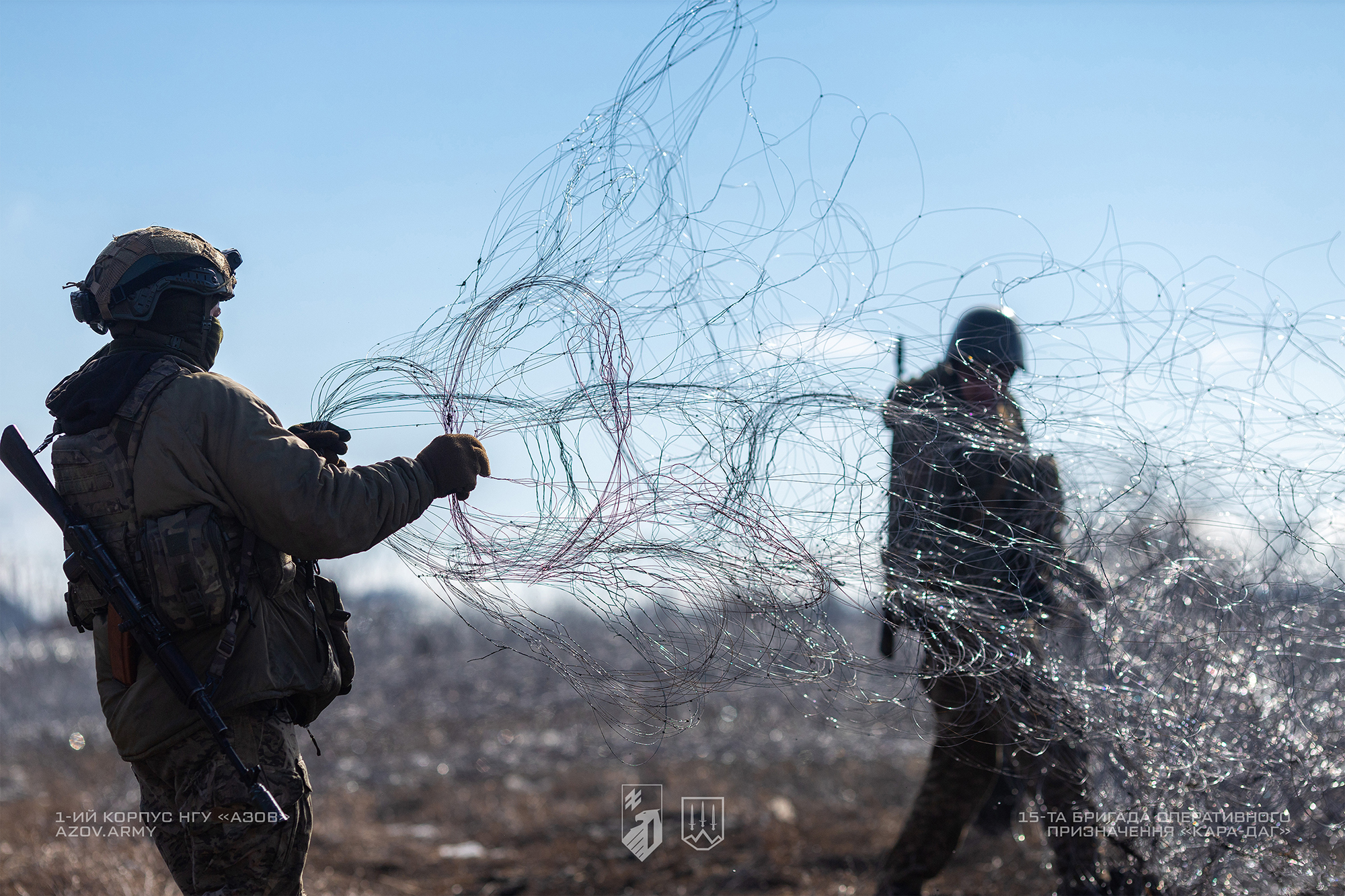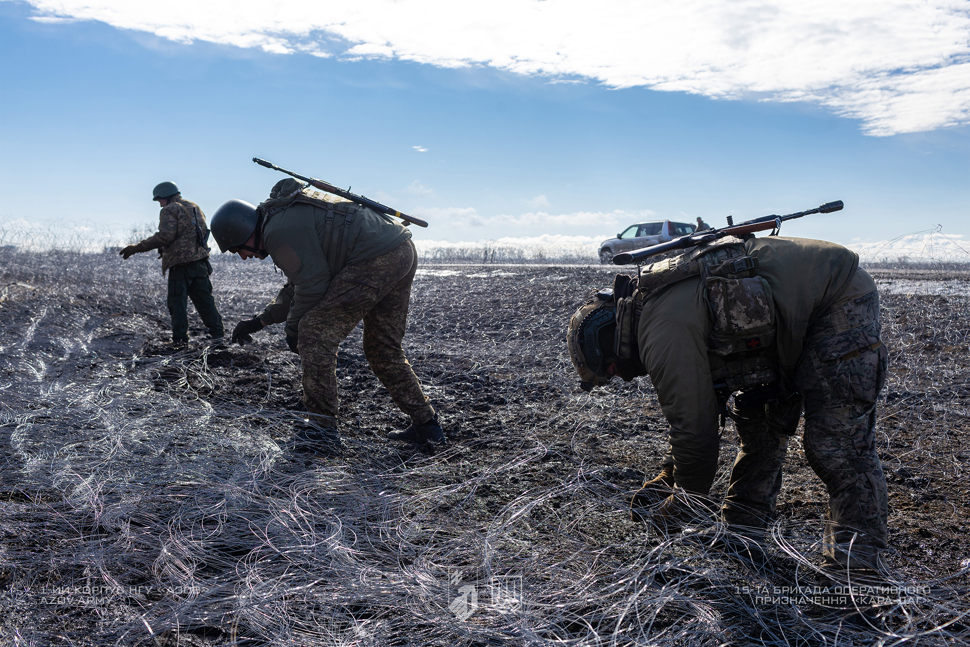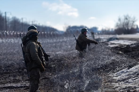 Інженери 15-ї бригади оперативного призначення НГУ «Кара-Даг» облаштовують інженерні загородження на Куп’янському напрямку.