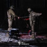 Техніки роти РБпАК «Радість» готують дрон до вильоту безпосередньо поблизу фронту: кріплять вантаж, перевіряють обладнання та заряджають батареї. Керування при цьому здійснюється дистанційно — з безпечних позицій.