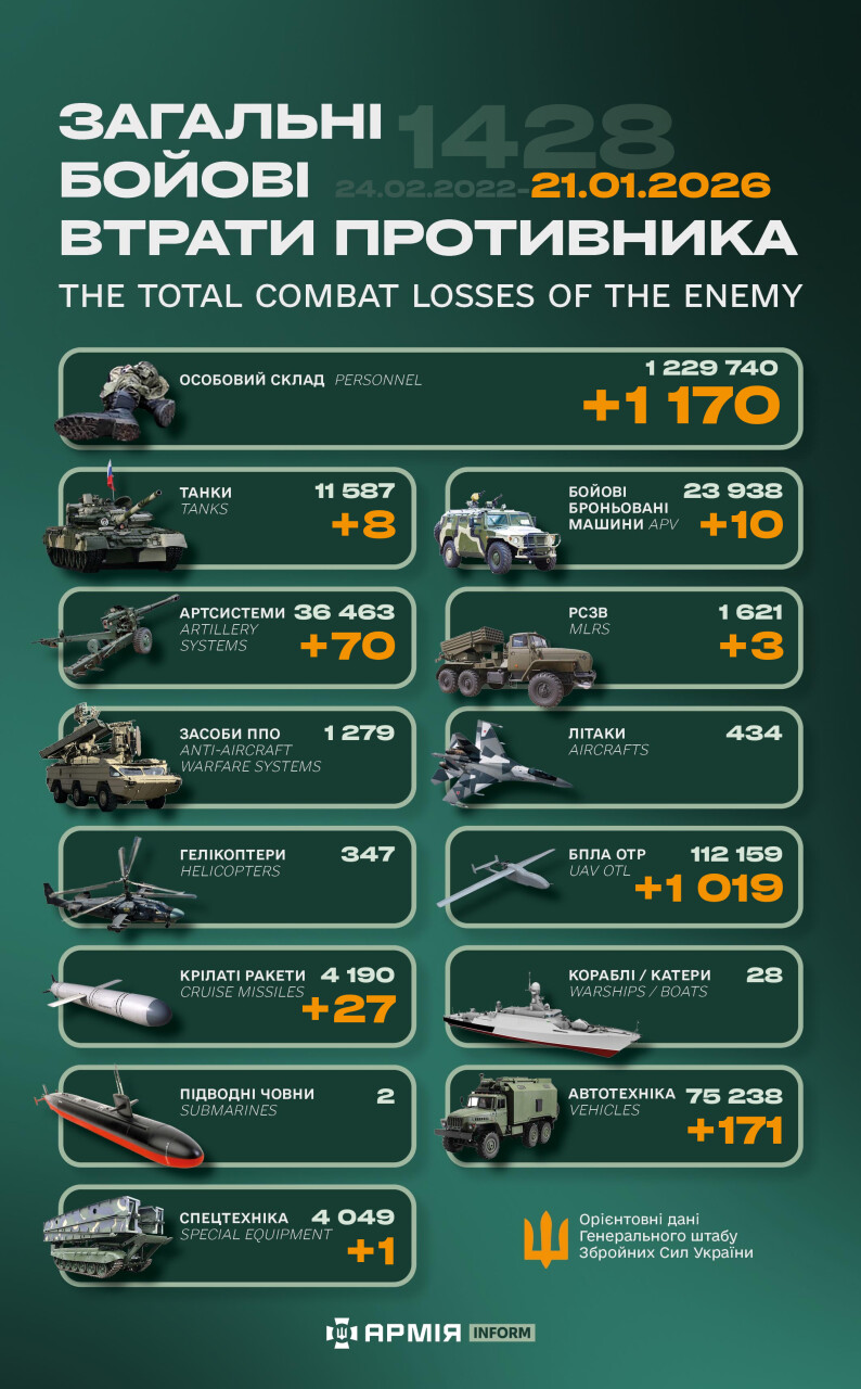 Total combat losses of the enemy from February 24, 2022 to January 21, 2026 are estimated at: